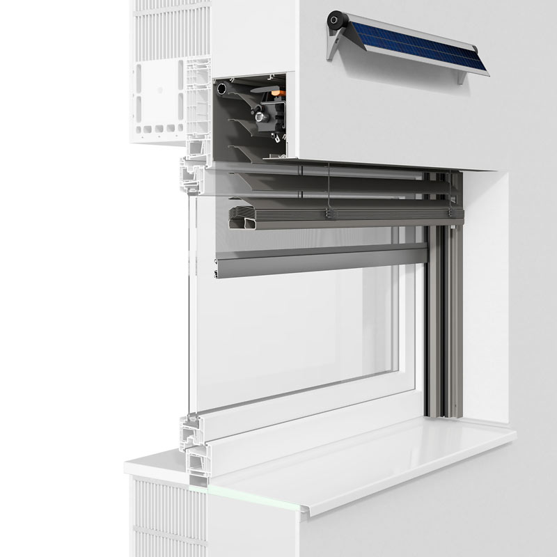 Für den Schutz Ihrer Privatsphäre lassen sich ROMA Raffstoren mit der Tageslichttechnik ausrüsten. Dabei bleibt der untere Teil der Raffstoren blickdicht geschlossen, während der obere Teil Licht und Helligkeit in die Räume lässt. Mücken und Fliegen werden mit einem integrierten Insektenschutzgitter aus hochwertigem Fiberglasgewebe abgehalten.